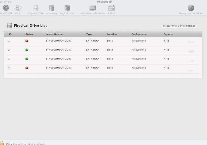 I have an old Pegasus R4 unit connected to a Mac Studio. All drives are almost new. Replaced a few months ago after a dead drive problem. Now I have a Raid5 configuration and a few days ago I found my unit with 2 dead drives. I try to attach a few screenshots.